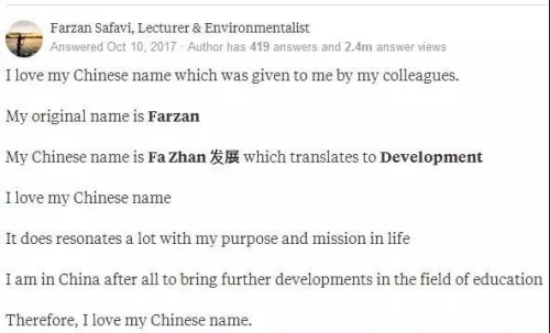 一名網(wǎng)友起了一個(gè)中文名字,叫發(fā)展,并且自己很喜歡“和我的人生目標(biāo)和使命相呼應(yīng)”。