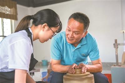 本次實(shí)踐活動(dòng)的“老師”,是中國(guó)工美行業(yè)藝術(shù)大師、廣東省工藝美術(shù)大師、手拉壺非遺傳承人張瑞端及其兒子張澤鋒。這一周時(shí)間里,張瑞端父子“手把手”教學(xué),“比教自己徒弟還用心”。