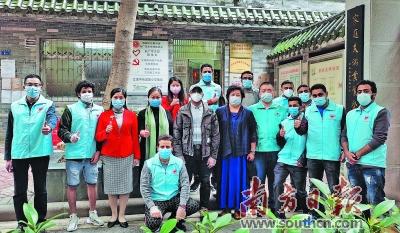 錢(qián)楓(右二)和很多外籍志愿者活躍在廣州社區(qū)疫情防控第一線。南方日?qǐng)?bào)記者 龔春輝 攝
