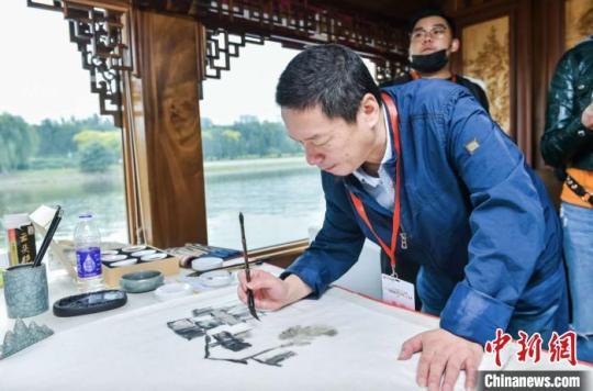 中新網(wǎng)北京9月24日電(王逸飛 錢晨菲)大型仿古畫舫“通運號”上,古琴音律曲韻流觴,一筆丹青聯(lián)通古今。24日,作為2020中國大運河文化帶“京杭對話”重要活動之一的“京杭風韻”運河雅集活動,在北京通州舉行。