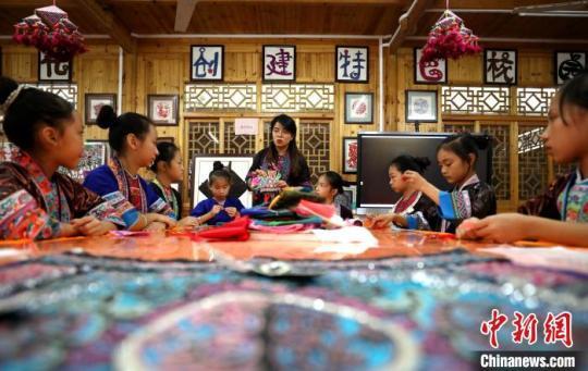 11月6日,廣西柳州市三江侗族自治縣民族實(shí)驗(yàn)學(xué)校開展“特色課堂”開放日活動(dòng),邀請(qǐng)非遺傳承人“送教上門”,傳授刺繡、吹侗笛、畫侗畫、唱侗族大歌等非遺文化技藝。近年來,該縣大力推進(jìn)民族文化進(jìn)校園活動(dòng),將非遺文化引進(jìn)中小學(xué)課堂,豐富中小學(xué)生文化生活,促進(jìn)非遺技藝代代相傳。