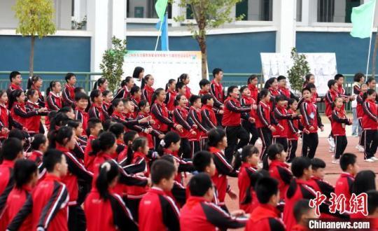 在廣西三江侗族自治縣民族實(shí)驗(yàn)學(xué)校,學(xué)生們?cè)谔嘁?。 吳練?攝