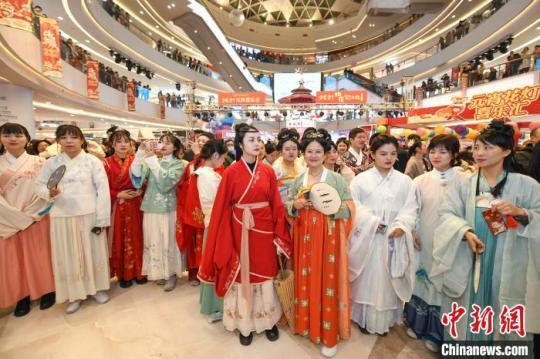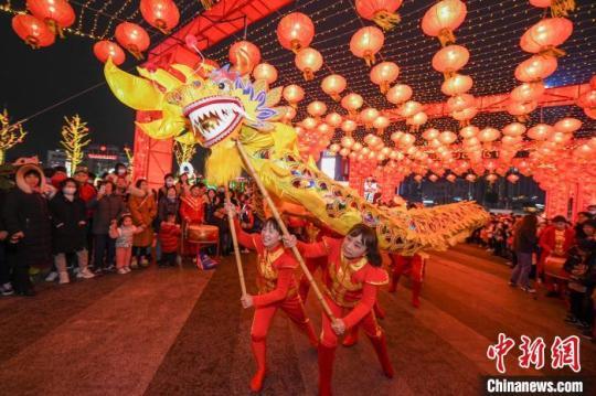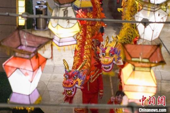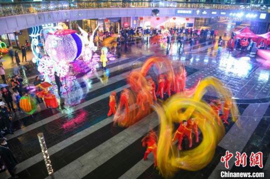 2月26日晚,長(zhǎng)沙步步高梅溪新天地舉行元宵花燈喜樂(lè)會(huì),民眾身著華服賞燈,并用舞龍舞獅的方式歡慶元宵佳節(jié)。