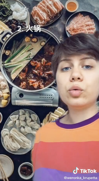 @weronka_krupetta 曾在中國(guó)留學(xué)。她在TikTok上發(fā)布了一條視頻,細(xì)數(shù)她最懷念的中國(guó)食物,排名前二的是麻辣燙和火鍋。