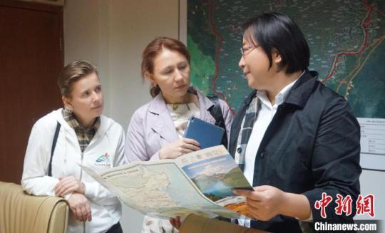 俄羅斯揚(yáng)甘陶世界地質(zhì)公園人員在丹霞山學(xué)習(xí)遺產(chǎn)教育的做法 韶關(guān)市丹霞山管委會(huì) 供圖