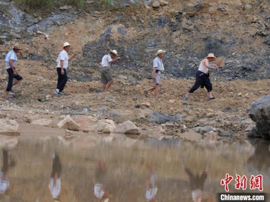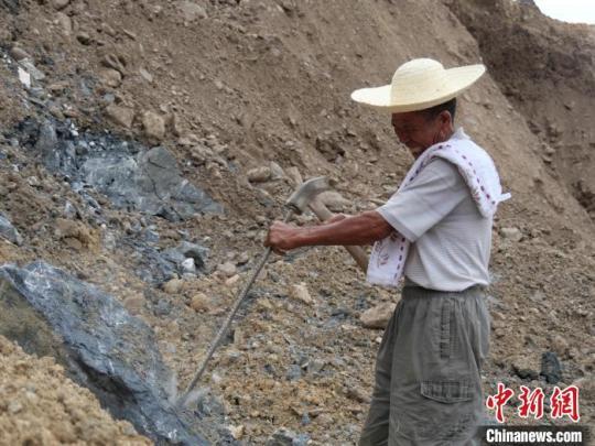 王理亮和老友們邊撬石頭邊排練新號子。王昊昊 攝