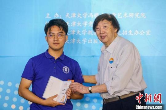 借新書(shū)首發(fā)之機(jī),天津大學(xué)2021年首批本科生錄取通知書(shū)簽發(fā)儀式也在馮驥才文學(xué)藝術(shù)研究院舉行。中國(guó)工程院院士、天津大學(xué)校長(zhǎng)金東寒當(dāng)場(chǎng)簽發(fā)0001號(hào)錄取通知書(shū),馮驥才先生也現(xiàn)場(chǎng)為這份通知書(shū)里的《天津文化地圖》簽名。