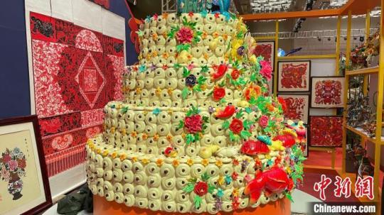 山西省中陽(yáng)縣夢(mèng)之谷民俗文化產(chǎn)業(yè)開(kāi)發(fā)專業(yè)合作社展出的大型工藝作品。