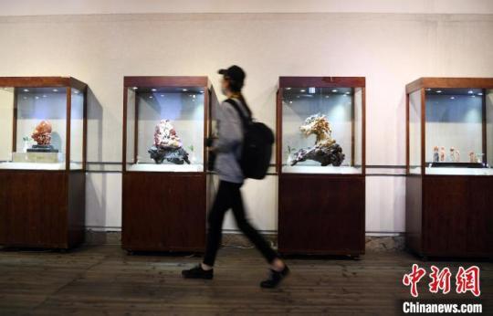 此次展覽共展出中國工藝美術(shù)大師鄭幼林及其19位弟子創(chuàng)作的45件(套)壽山石雕作品?!∮浾邉⒖筛?攝