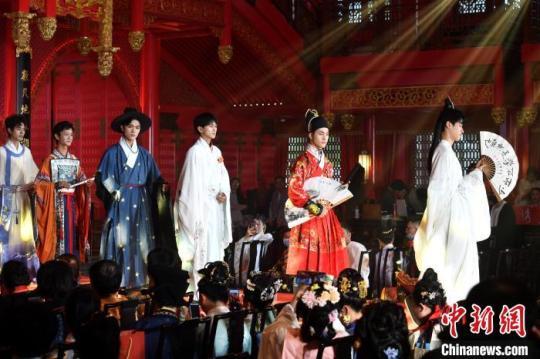 11月13日,由福建省僑聯(lián)主辦,福建省僑界青年聯(lián)合會(huì)、福建省漢服文化促進(jìn)會(huì)、福建漢服天下和閩越水鎮(zhèn)共同承辦的第四屆海峽漢服文化節(jié)暨第九屆中華禮樂(lè)大會(huì)正在福州舉行,期間舉行了漢服主題T臺(tái)秀、漢舞大賽、少兒漢服大賽等活動(dòng),吸引了大批漢服愛(ài)好者參與,也讓市民一睹漢服風(fēng)采。(記者 呂明)