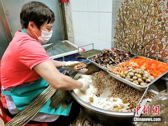 “麥大姐士多店的‘粽王’,餡料非常豐富,五花肉入口即化,蛋黃咸香美味,每次過來幫襯首選粽王,但粽王容易售罄,所以想吃就早點去買?!痹诶鬄硡^(qū)人民北路附近上班的趙女士說,她已訂了50條粽王,準(zhǔn)備端午前送給親朋好友品嘗。