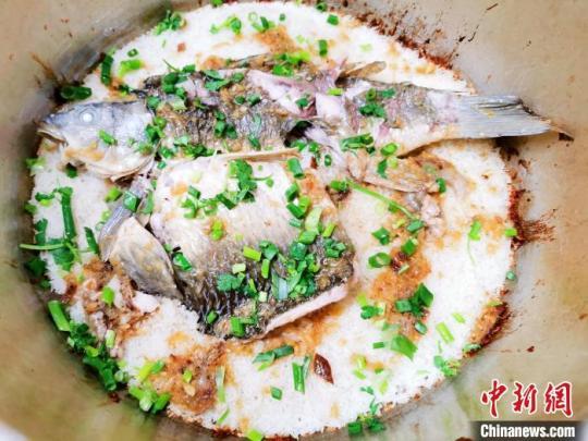 水步鎮(zhèn)也有多家餐廳用鯽魚烹飪招牌菜式,食客好評如潮?!扒皟商煸谒揭患也蛷d,我吃了一道菜叫‘鹽焗鯽魚’,口感比較獨特,是用錫紙包住焗熟的,里面只有鹽和一條個頭較大且沒有刮魚鱗的鯽魚。上桌后,用筷子將魚鱗帶著魚皮整片小心掀開,直接吃里面的魚肉。”近日,肇慶的陳女士跟臺山的朋友聊天時說,鹽焗鯽魚的做法給她留下了深刻的印象。