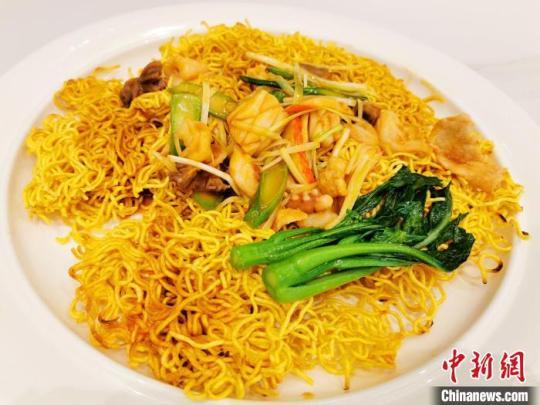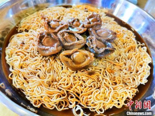 臺山市沖蔞鎮(zhèn)華東餐廳推出的鮑魚煎面 李曉春 攝