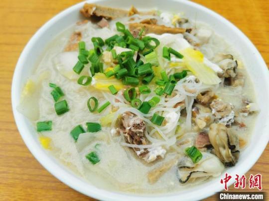 用生蠔、魚餅、咸雞等配料烹制的湯米粉,咸香鮮爽 李曉春 攝