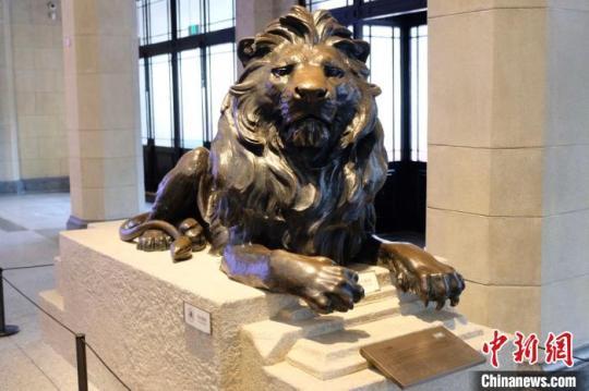 圖為“匯豐銅獅”中閉口靜蹲的銅獅?!?a target='_blank' href='//www.chinanews.com/'>中新社記者 王笈 攝
