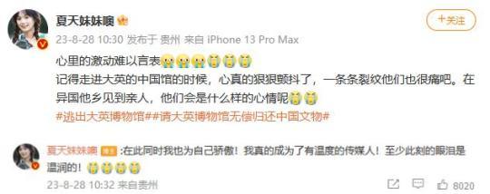 預(yù)告片發(fā)布后,up主“夏天妹妹噢”難掩激動之情,她清楚地記得自己走進大英博物館的中國館時,心真的狠狠顫抖了。“一條條裂紋他們也很痛吧,在異國他鄉(xiāng)見到親人,他們會是什么樣的心情呢?”同時,她也為自己真正成為了有溫度的傳媒人而驕傲。