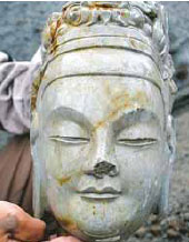 據(jù)了解,在2003年8月份的縣西巷考古發(fā)掘中,考古人員曾在T12探方內(nèi)出土了一尊精美的菩薩頭像,其程度與這次出土的菩薩造像十分相似。但這回的菩薩頭像精美程度較之前出土的那尊菩薩頭像似乎更勝一籌。