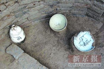 據(jù)京華時(shí)報(bào)報(bào)道,此次發(fā)掘的5座元代墓葬形制均為圓形磚砌,有墓道、墓門,墓室內(nèi)有磚砌棺床。其中3座火葬墓形制較小,頂部已被破壞。另外2座墓葬也為磚室,一座是雙人合葬墓。墓葬中所出土的文物主要有銅鏡、銅錢、瓷器、陶器、陶質(zhì)朱書買地券等。