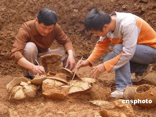 華聲報溫嶺消息:據(jù)《今日早報》報道,11月3日,浙江省文物考古研究所副所長陳元甫,在溫嶺市大溪鎮(zhèn)塘山村塘山古墓考古挖掘現(xiàn)場向媒體宣布,考古專家們經(jīng)最近一個多月的挖掘,在溫嶺大溪鎮(zhèn)塘山村發(fā)現(xiàn)一處大型戰(zhàn)國墓葬,距今約兩千多年。