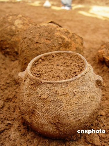 記者在現(xiàn)場看到,不少村民圍在墓坑四周。陳元甫告訴記者,古墓是從9月21日開始挖掘的。該墓為長方形,墓里的棺槨及尸骨均已無存。墓坑里挖出的一件環(huán)形青玉璧有裂紋,陶器有罐、壺、盆、杯和紡輪等,其中一些還是印紋陶!皬墓拍挂(guī)模和隨葬品來看,墓主當(dāng)是當(dāng)時的上層貴族!标愒φf。