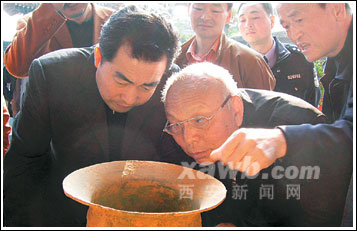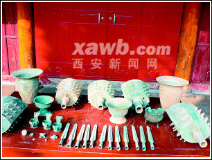 11月8日下午5時30分,陜西省扶風縣城關鎮(zhèn)五郡西村6位農(nóng)民一鐵鍬鏟下去,一個青銅器窖藏驚現(xiàn)在眼前。當?shù)匚奈锊块T立即進行搶救性清理,共出土青銅器27組件,共有銘文255字。文物專家稱這些文物為研究當時社會提供了不可多得的實物依據(jù)。
