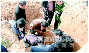 8日下午5時30分左右,五郡西村在村子北邊已經(jīng)修了幾天的水渠快要完工了,6位農(nóng)民拉完最后一車土也準備收工?稍阽P土的過程中他們聽見“咣”地一聲,大家都以為是鐵鍬碰到石頭上了,可刨出來一看,地里埋的東西發(fā)出耀眼的青綠色光芒,“這是青銅器啊!”他們發(fā)出了這樣的驚嘆。再輕輕一刨,又露出了很多,他們看到有編鐘、簋,還有斗,“原來村子出土過青銅器,我們見過,所以一看這就是文物,就商量著要趕緊報告上面,還找來紙筆大概登記了一下!睕]有任何猶豫,劉銀科和劉東林去打電話,其他幾位留守在現(xiàn)場,“走的時候還約定:現(xiàn)場的人不得少于三個。而且沒給任何人說,連我媳婦都不知道。”樸實的劉銀科告訴記者。