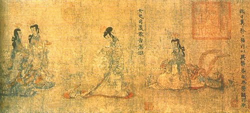 此幅作品原為清宮藏畫,在英法聯(lián)軍火燒圓明園時流落到英國!杜敷稹肥菚x代文學(xué)家張華所寫的一篇旨在勸說婦女如何立身處世,修養(yǎng)品德的文章。該圖按故事內(nèi)容分段作畫,近似今之連環(huán)畫。線條柔軟而纏綿,就像是蠶絲一樣細密流暢。這種線條的出現(xiàn)與篆書的影響是分不開的。后人也逐漸將這種畫風(fēng)嫻靜的線條,不再賦加色彩使之獨立成為畫種,謂之“白描”!鞍酌琛惫し蛞渤蔀榱酥袊嫷囊环N基本功。這幅畫較好的注重了人物的內(nèi)心的精神狀態(tài)。(來源:藏點網(wǎng))