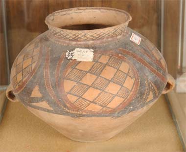 彩繪紋飾,大都采自和當(dāng)時先民生活關(guān)系密切的自然界形象。原始人能夠捕捉花鳥魚蟲等形象的形態(tài)特征,以寫實(shí)或夸張的手法有力地表現(xiàn)出來,其天真、稚拙的畫風(fēng)讓我們感覺到濃郁的原始?xì)庀。如高明區(qū)博物館藏的新石器時代的彩陶雙耳罐,上面繪滿了彩陶網(wǎng)紋、方格蚊,畫面形象古樸嚴(yán)謹(jǐn),具有鮮明的繪畫意趣,象征含義豐富而神秘,藝術(shù)表現(xiàn)耐人尋味,引人探微。它們的背后閃耀著我們祖先的迷人智慧。