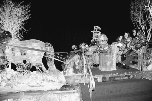 記者問一位帶著兩個孩子的母親來自何方。她說是南部邁阿密,已是第二年前來。記者問原因時,她指著孩子說,你問他們吧。去年沒有看夠,嚷嚷著盼了一年了,能不來么!一對老夫婦走了出來,記者一問,他們來自紐約州。記者說,那里并不缺冰雪啊。他們說,是啊,那里有時也會有露天的冰雪展出呢,不過太過粗糙,也缺少色彩,同這里的精雕細刻沒法比,這兒才是真正的藝術(shù)作品呢!一位40多歲的夫人推著輪椅走了出來,車上坐著一位殘疾姑娘。記者問她們喜歡哪一個館,女兒告訴我們,她最喜歡的是蒸汽火車。轉(zhuǎn)過身來,入口處兩家人扶老攜幼準(zhǔn)備進館,一位青年女子正俯身給嬰兒車上的嬰兒蓋好棉衣,看來孩子還不滿兩歲。母親說,舍不得錯過這么好的機會,且也想讓孩子看看這么美麗的中國冰雕。