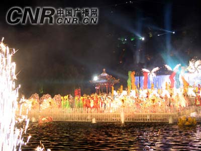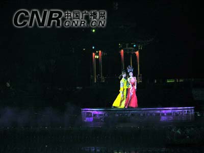 華聲報(bào)西安消息:“七月七日長(zhǎng)生殿,夜半無人私語時(shí)。在天愿作比翼鳥,在地愿為連理枝”,1200年前的“愛情盟誓”在“七夕”之夜重現(xiàn)盟誓發(fā)生地華清池。7月31日晚,陜西首部大型山水實(shí)景舞劇——《長(zhǎng)恨歌》以驪山為背景、以唐華清宮九龍池為舞臺(tái),在77對(duì)情侶重溫愛情誓詞中拉開了大幕。真山、真水、真景在夜晚色彩斑斕景觀燈光映襯下,營(yíng)造出古今文明水乳交融、美輪美奐的舞臺(tái)效果,使中外觀眾近距離充分感受了盛唐文化的魅力。