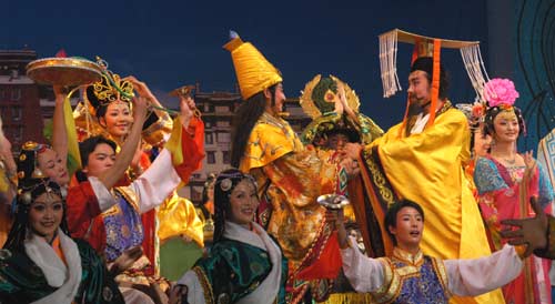華聲報北京消息:1300多年前,大唐文成公主入藏走出“唐蕃古道”;2006年7月1日一條全新的“唐蕃古道”——青藏鐵路建成通車;9月10日大型原創(chuàng)民族服飾歌舞劇《唐蕃古道》在北京民族宮大劇院上演,以古老的故事祝福新時期的“和諧之路”。
