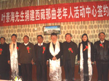 | 寧波市僑商會積極響應(yīng)國家號召,兩次赴西藏捐贈400萬元人民幣,支援西藏建設(shè)。2006年1月,會長葉泰海先生捐款300萬元,建西藏那曲地區(qū)老干部活動中心;8月,常務(wù)副會長俞曙先生捐款100萬元,助建西藏那曲地區(qū)貧困老黨員的住房。 |