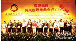 | 5月30日,廣東國際華商會舉行成立大會。僑鑫集團董事長周澤榮擔(dān)任首任會長。 |